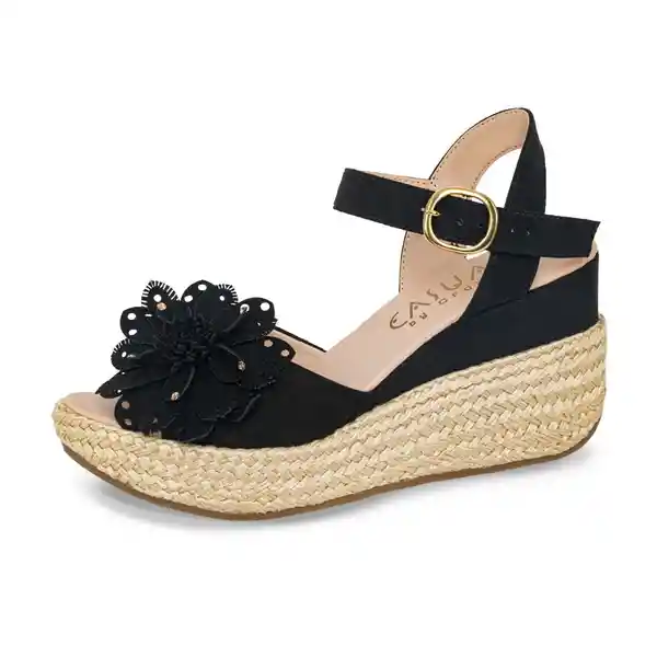 Calzado Casual Ideal Para Lucir un Toque de Elegancia en Climas Cálidos. Con Apliques Que Estilizarán Tus Pies y Diseño Permite Que Tus Pies Respiren Con Tranquilidad. Elaborados en Sintético Gamuzado. Forro y Plantilla en Sintético. Suela en Pu Forrada en Textil Tipo Yute. Tacón Altura 5. Puede Presentar Variación de Tono. Hecho en Colombia. Garantía 2 Meses. Código Sic: 901101987