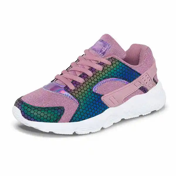 Zapatos Deportivos Ideales Para Los Atletas Más Chicos. Con Propiedades Que Amortiguan el Impacto de Las Pisadas y da Mayor Comodidad en la Práctica de Los Deportes. Elaborado en Textil Con Combinación en Lurex y Sintético Con Diseño Hexagonal Decorativo y Metalizado, Aplique en Pvc, Suela en Eva Ultraliviano. Importado de China. 60 Días de Garantía Hecho en China. Garantía 2 Meses. Código Sic: 800120681