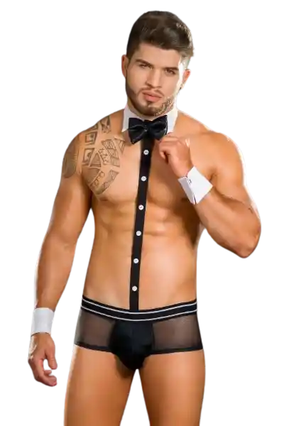 Todo Estará Listo y Servido en el Lugar Que lo Desees. Puedes Utilizar el Boxer Como Prenda Interior. Color: Blanco y Negro Incluye: Boxer Puños Cuello Con Corbatín y Tira Vertical Separable. Material: 96% Nylon 4% Elastano Cuidados: Lavar a Mano o en el Proceso de Prendas Delicadas. Confidencialidad: Tus Pedidos se Envían en Una Caja o Sobre Totalmente Sellado Opaco Sin Nigún Tipo de Marcas Externas. Para Nosotros es Muy Importante tu Privacidad.