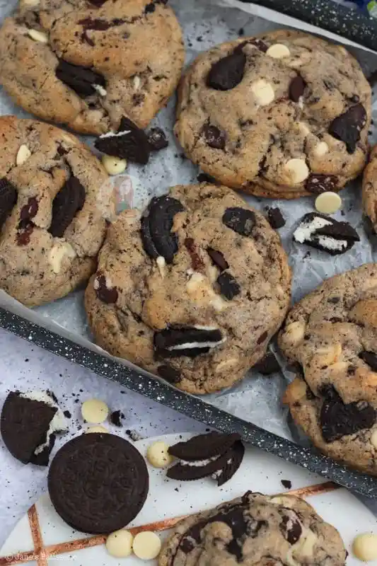 Galletas de oreo rellenas con nutella y decoradas con crema