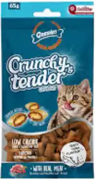 Gnawlers Snack Crunchy & Tender Cat Treats Atún 65Gr, estas golosinas combinan lo mejor de ambos mundos: una capa exterior crujiente y un centro suave y tierno. Como resultado, tu gato disfrutará de un delicioso bocado con cada bocado.