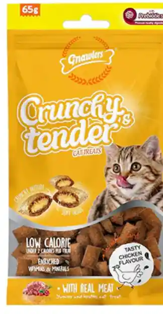 Gnawlers Snack Crunchy & Tender Cat Treats Pollo y Leche 65Gr, consiente a tu gato con la irresistible combinación de texturas crujientes y tiernas de las Golosinas para Gatos Gnawlers Crujientes y Tiernas. Estas deliciosas golosinas tienen un delicioso sabor a pollo y leche , perfecto para satisfacer el paladar de tu gato. Elaboradas con ingredientes de alta calidad, estas golosinas son una excelente manera de consentir a tu amigo felino y, al mismo tiempo, ofrecerle un snack nutritivo