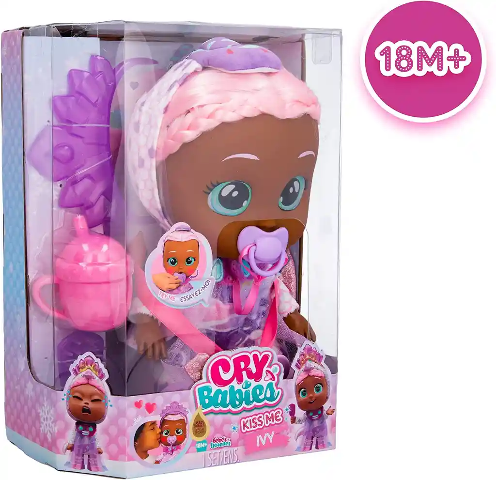 Dale a Ivy un dulce beso y mira cómo sus mejillas se sonrojan Esta característica súper dulce de lujo deleitará a las niñas y niños mientras duchan su muñeca de bebé con amor y afecto ¡Hace 15 sonidos realistas de bebé! Ella llora y coos como un bebé real, lo que permite que los niños experimenten la nutrición y el cuidado de su muñeca bebé Su atuendo brillante y zapatos son cambiables, por lo que es fácil mezclar y combinar trajes con nuestras otras muñecas Cry Babies Elodie viene con un atuendo moderno, chupete a juego, corona, cepillo y biberón Muñeca de bebé perfecta para un divertido juego imaginativo. Edad recomendada a partir de 18 meses.