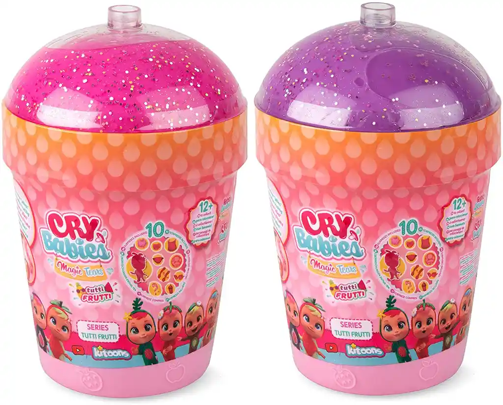 Presentamos el nuevo y increíble mundo de Cry Babies Magic Tears Tutti Frutti Hay más de 12 personajes de frutas para coleccionar. ¿Encontrarás a Ella la la fresa? ¿Pompones la manzana? ¿O Mel la sandía? Los personajes huelen como su propia fruta y lloran gelatinas. Hay hasta 6 colores diferentes de gelatinas Al desempaquetar la misteriosa casa de batidos, desvelarás la muñeca de bebé totalmente articulada con 9 accesorios ocultos. Algunas cápsulas contienen accesorios especiales de tutti frutti Utiliza el biberón incluido para alimentar agua (4 botellas llenas) a tu muñeca Cry Baby Magic Tears, espera al menos 2 minutos para activar las lágrimas de gelatina. Por último, aprieta su vientre y míralos llorar por arte de magia ante tus ojos Descubre la serie animada de Cry Babies Magic Tears Tutti Frutti en YouTube y Prime Video