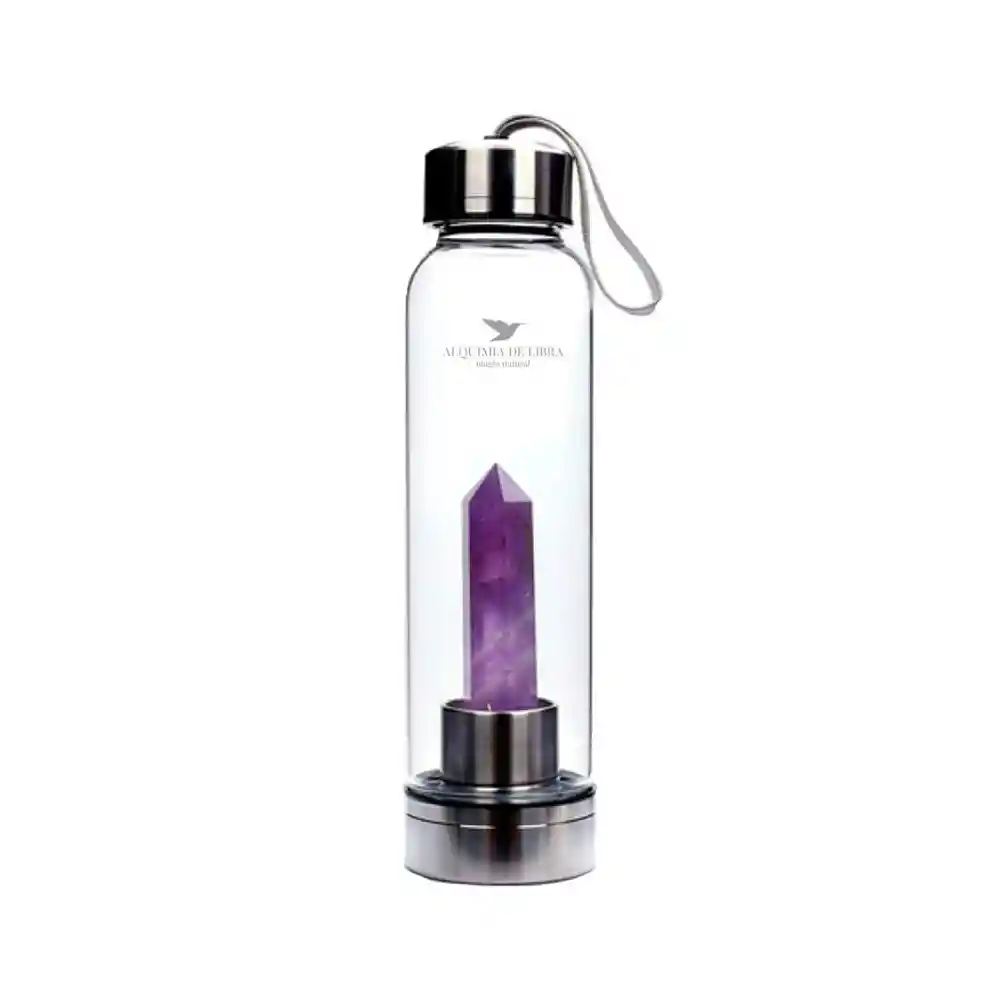 ¿QUÉ ES UN CRYSTAL ELIXIR? Son termos de vidrio que contienen un obelisco de cristal natural en su interior. Cada gema tiene propiedades únicas que proporcionan ciertos beneficios a nuestro cuerpo físico y alma. Durante el proceso de infusión, el agua se sintoniza con la vibración específica del cristal y al tomarla entra a nuestro sistema ingiriendo la energía del cristal que hayas elegido. Puedes intencionarlos siempre dependiendo de lo que necesites en el momento. Materiales: Vidrio y acero inoxidable Capacidad: 500ml Amatista (morada) - Invoca el poder de la protección: - Tranquilizante natural que ayuda a bloquear las energías ambientales negativas. - Aporta sentido común, potencia la memoria y la motivación y te centra emocionalmente. - Alivia el dolor de las tensiones físicas, emocionales y psicológicas bloqueando el estrés. - Limpia el aura y transmuta la energía negativa, además de estimular los chakras garganta y coronilla. - Es muy adecuado para el sistema endocrino y nervioso.