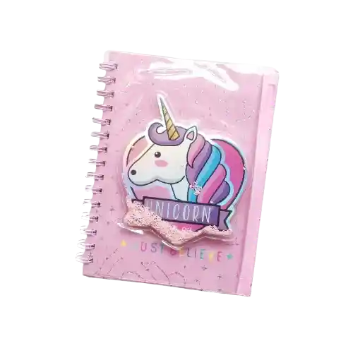 Linda Agenda de unicornios, Incluye Bolsillito tipo ziplock para que guardes tus lápices, hojitas con anotaciones, o hasta puedes crear tu propia carátula personalizada. Formato A5, páginas rayadas, 100 hojas de papel de 90 gm, anillado en espiral Ancho: 17 cm Largo 20,5 cm