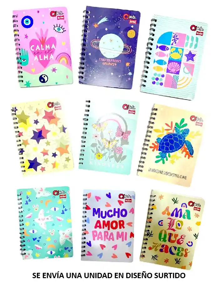 Cuaderno Argollado 100 Hojas Cuadriculadas Pequeño Diseños Surtidos Medidas 21 cm Alto X 16 cm Ancho Pasta blanda. Se envia color segun disponibilidad
