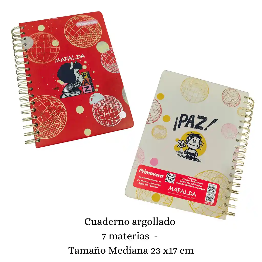 CUADERNO ARGOLLADO 7 MATERIAS MAFALDA - MEDIANO 23 X 17 CM
