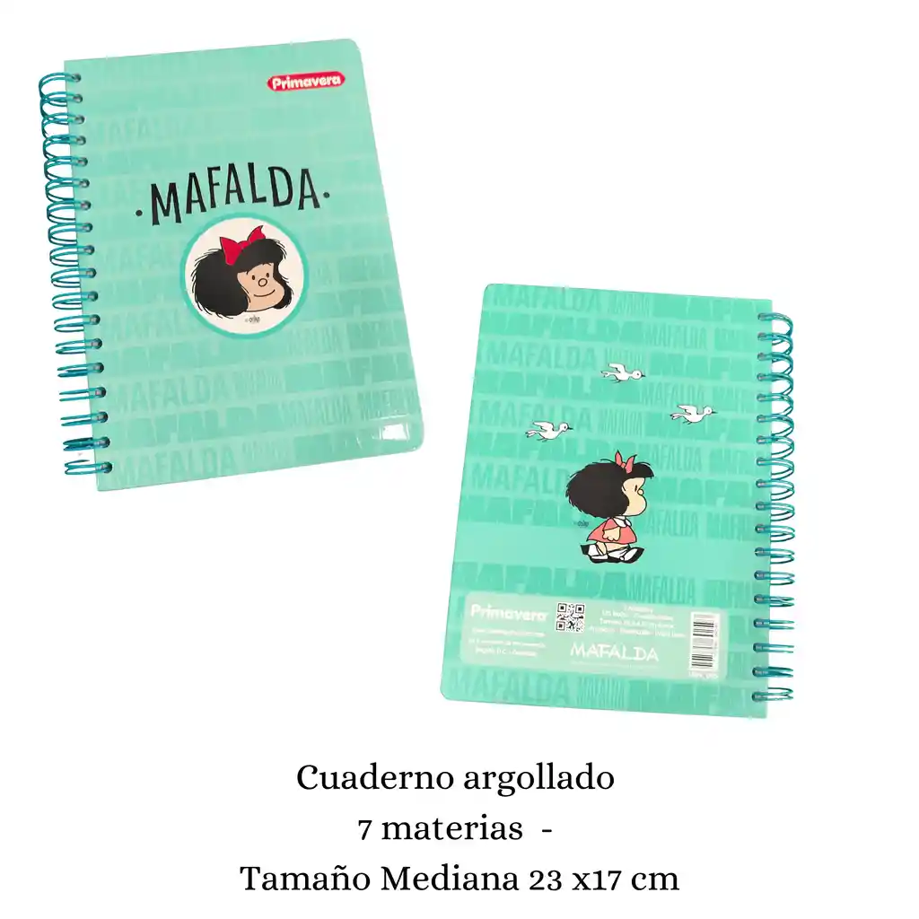 CUADERNO ARGOLLADO 7 MATERIAS MAFALDA - MEDIANO 23 X 17 CM