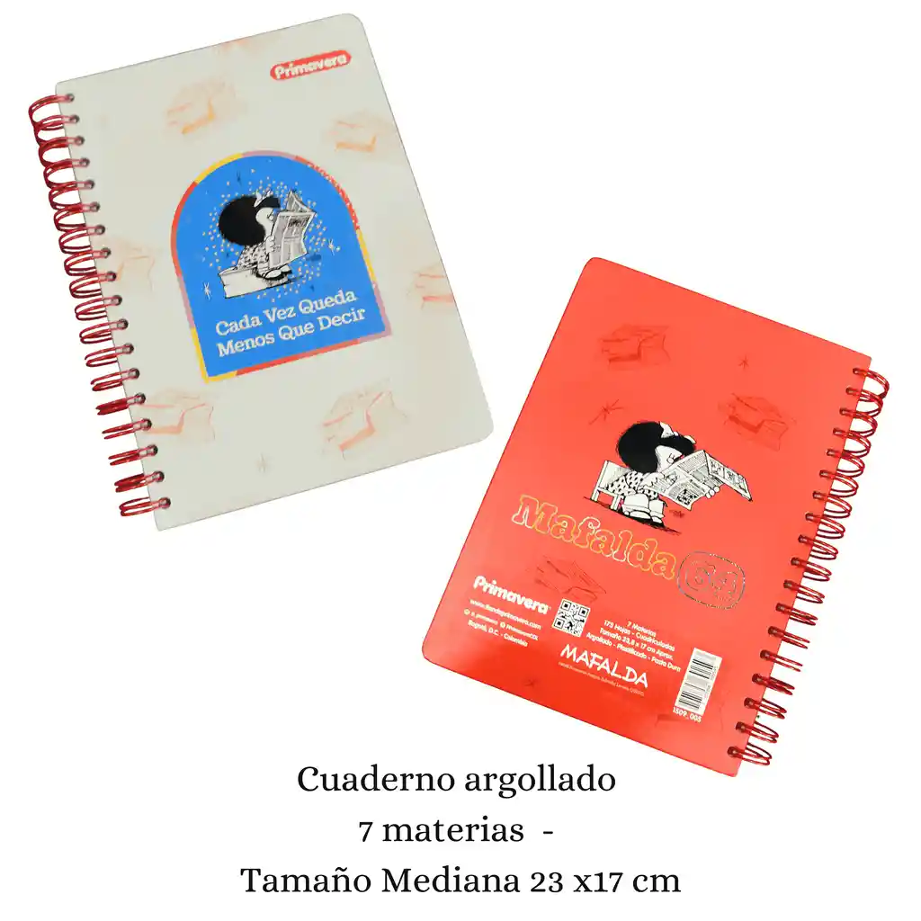 CUADERNO ARGOLLADO 7 MATERIAS MAFALDA - MEDIANO 23 X 17 CM