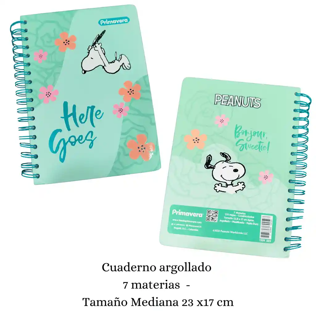 CUADERNO ARGOLLADO 7 MATERIAS SNOPPY - MEDIANO 23 X 17 CM