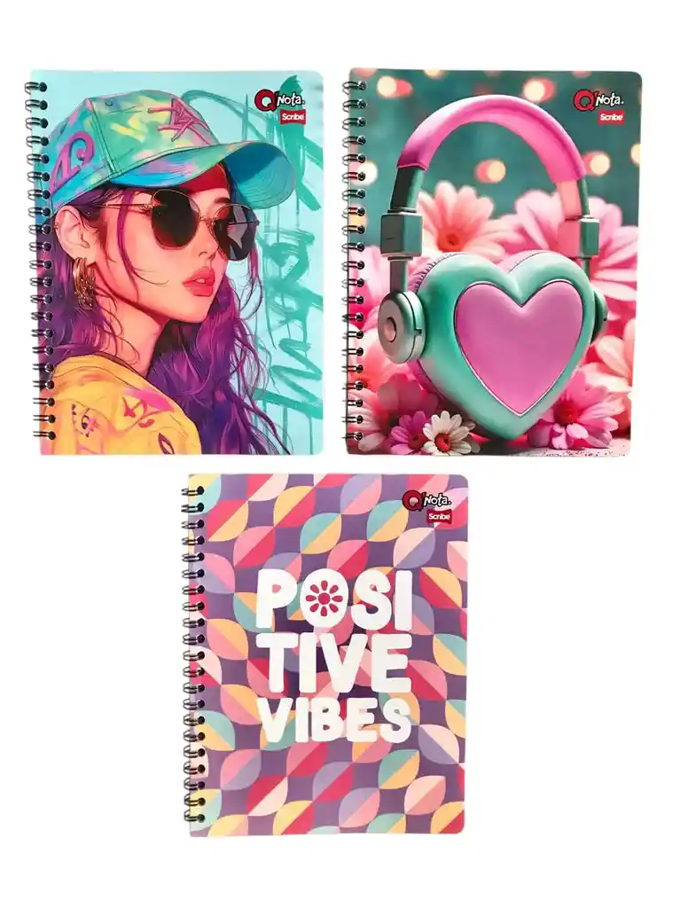 Cuaderno Argollado Con Hermosos Motivos Para Mujer En Tonos Pastel Marca Scribe Colección Qnota 80 Hojas Cuadriculadas Medidas: 28 x 21 CM.