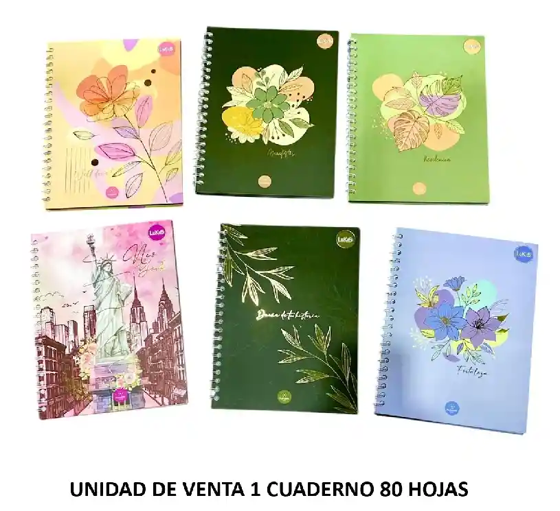 Cuaderno Argollado 80 Hojas Cuadriculado Lukis Diseños Surtidos Pasta Dura. EAN 7707320141156. Se envia diseño segun disponibilidad
