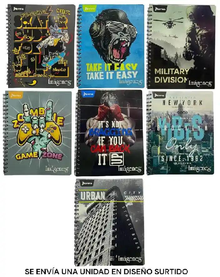 Cuaderno Argollado 80 Hojas Rayado Norma Diseños Surtidos Hombre Pasta Blanda Grande