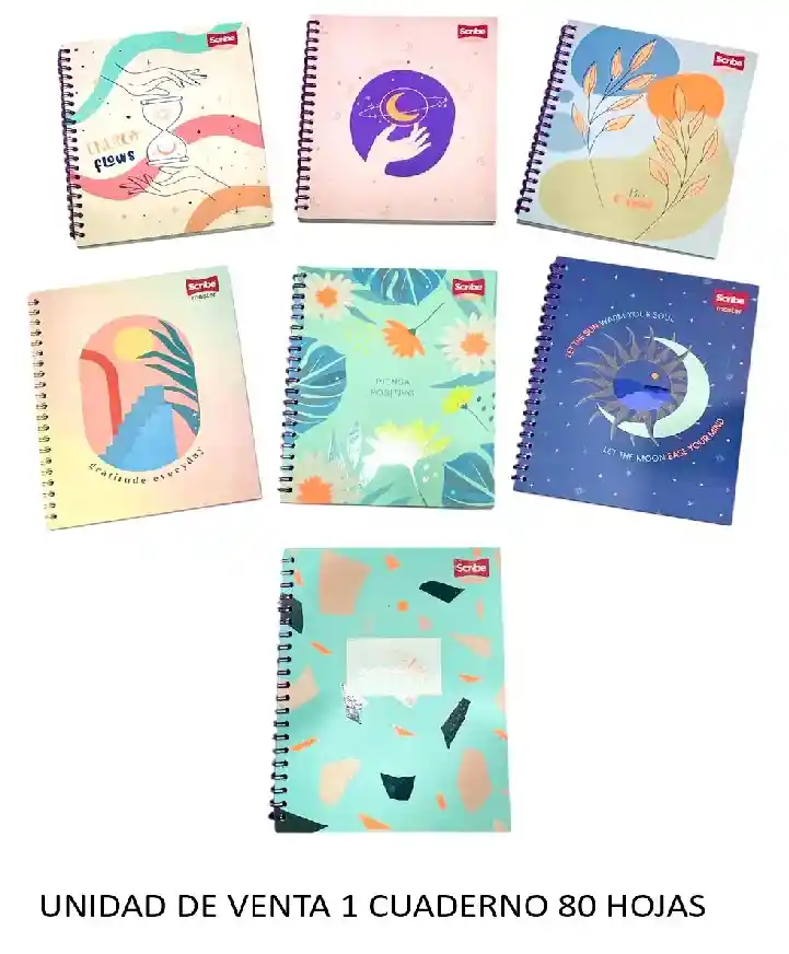 Cuaderno Argollado 80 Hojas Rayado Scribe Diseños Surtidos EAN 7701103990207. Unidad de venta 1 cuaderno 80 hojas. Se envia deseño segun disponibiliadad
