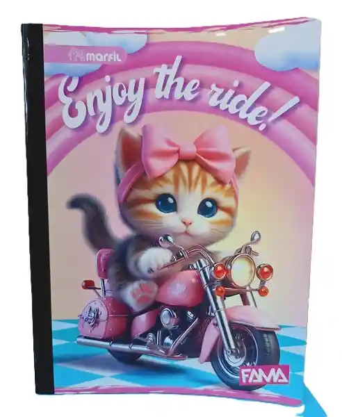 Cuaderno cocido de 50 hojas línea niña, sencillo.