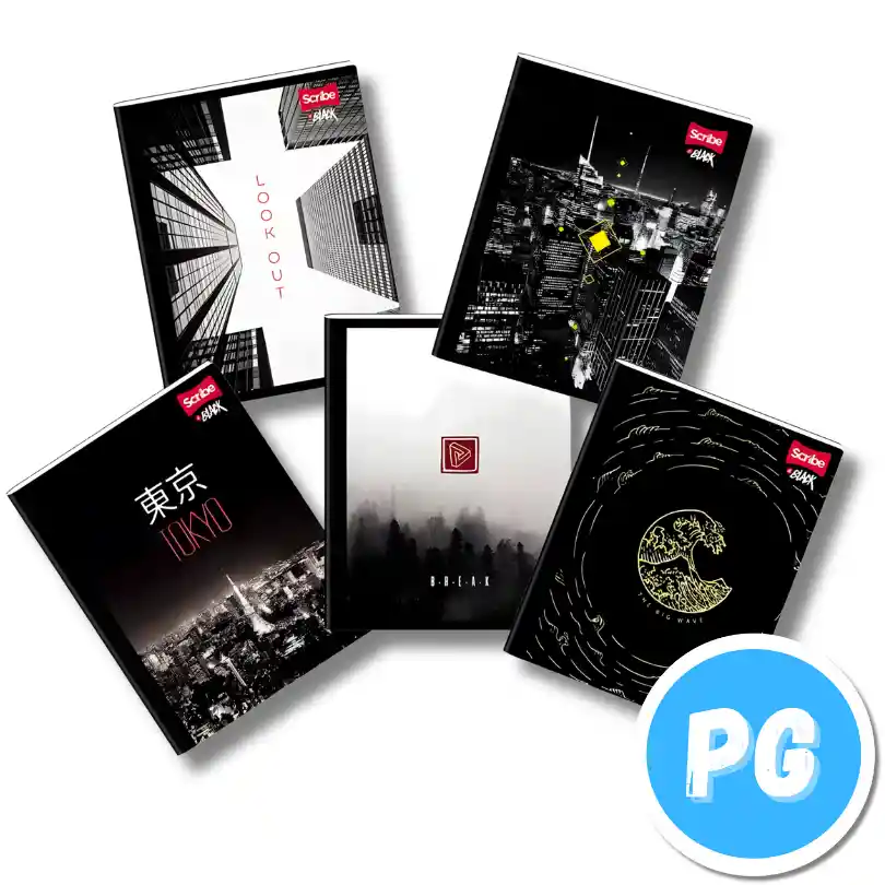 Cuaderno Cosido 100 Hojas Scribe In Black (Blanco y Negro) Cuadros