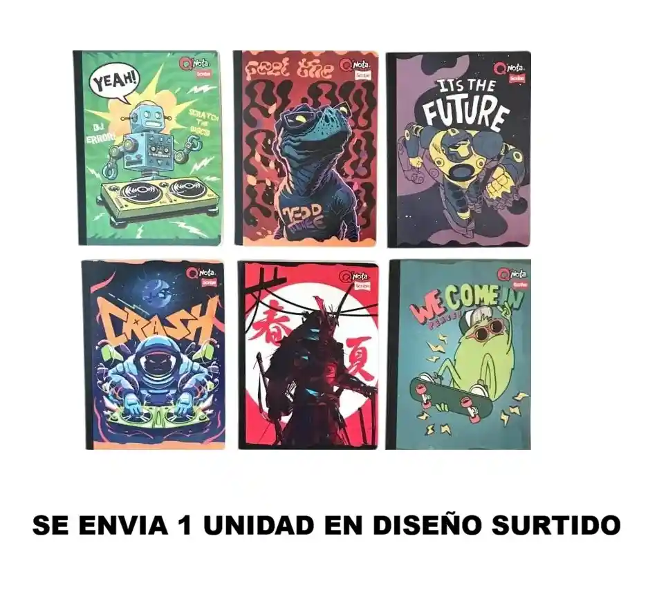 Cuaderno Cosido Para Niño Marca Scribe - Colección Qnota 100 Hojas Cuadriculadas DISEÑOS SURTIDOS. SE ENVÍA DISEÑO SEGÚN DISPONIBILIDAD.