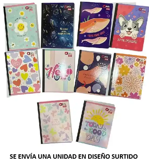 CUADERNO COSIDO CUADRICULADO 100 HOJAS QNOTA DISEÑOS SURTIDOS PARA NIÑA SE ENVÍA DISEÑO SEGÚN DISPONIBILIDAD
