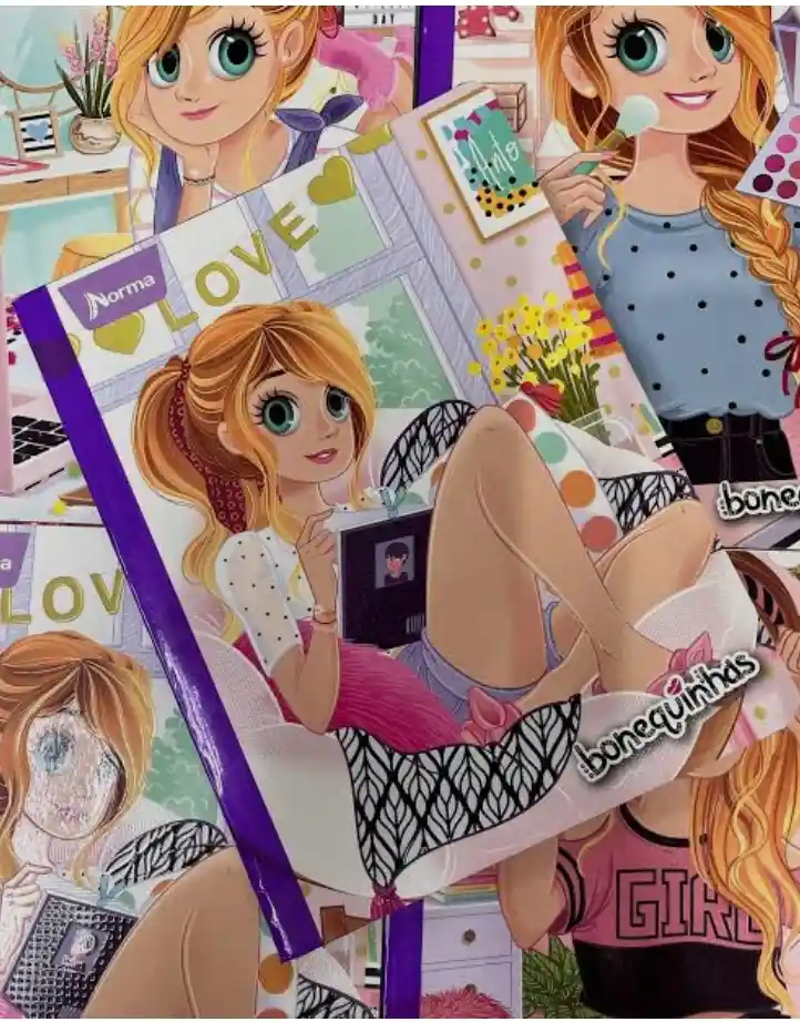 Cuaderno Cosido Bonequinhas 100 Hojas Cuadros Diseños surtidos (según disponibilidad)