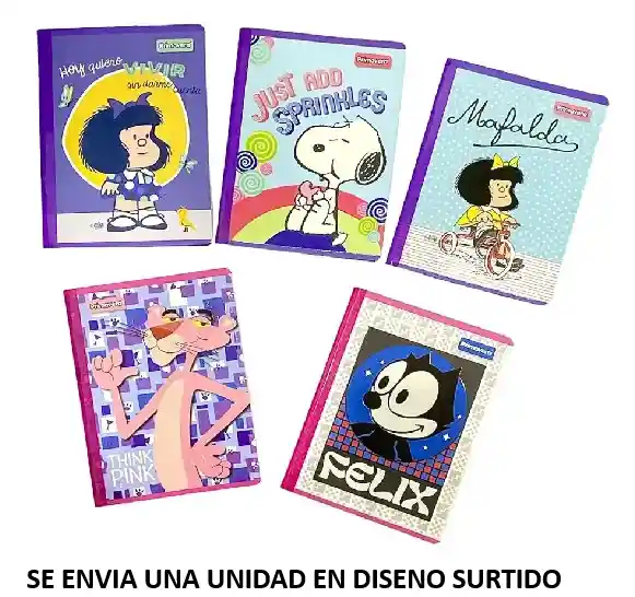 CUADERNO COSIDO DOBLE LINEA 100 HOJAS PRIMAVERA Viene en motivos surtidos. Se envía motivo según disponibilidad