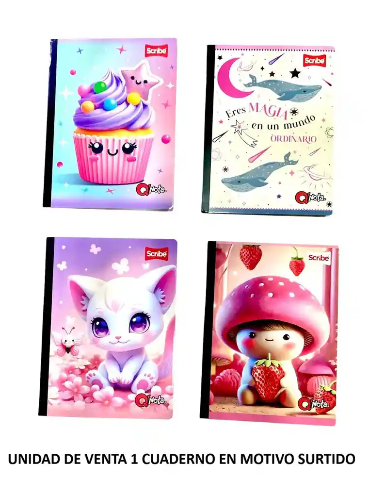 Cuaderno Cosido Para Niña Rayado 50 Hojas Scribe Qnota Surtidos. Se envia motivo segun disponibilidad. unidad de venta 1 cuaderno