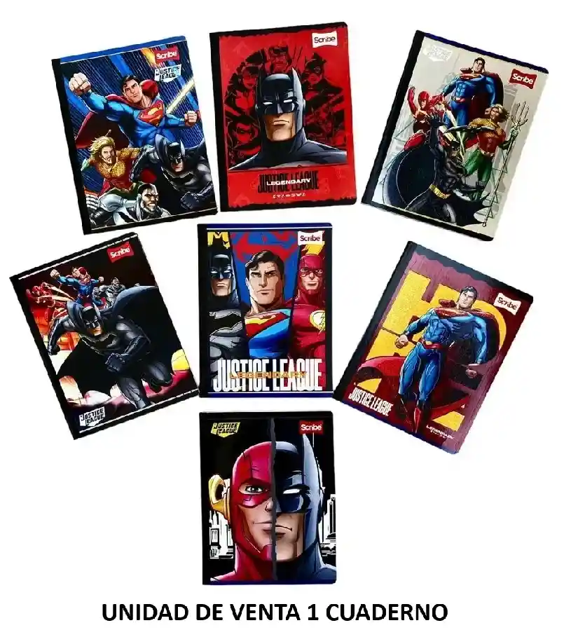 CUADERNO COSIDO PARA NIÑO CON STICKERS. 50 HOJAS CUADRICULADAS. MARCA SCRIBE COLECCIÓN LIGA DE LA JUSTICIA DISEÑOS SURTIDOS. SE ENVÍA DISEÑO SEGÚN DISPONIBILIDAD