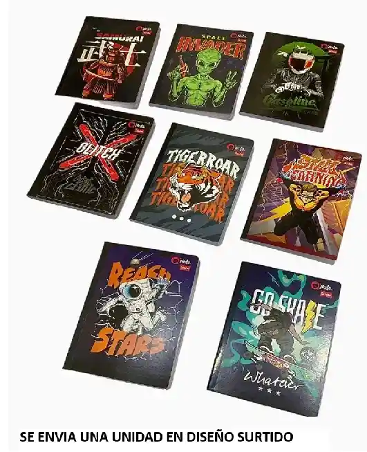 Cuaderno Cosido Rayado 100 Hojas QNota Scribe Diseños Surtidos Para Niño. Se envia diseño segun disponibilidad