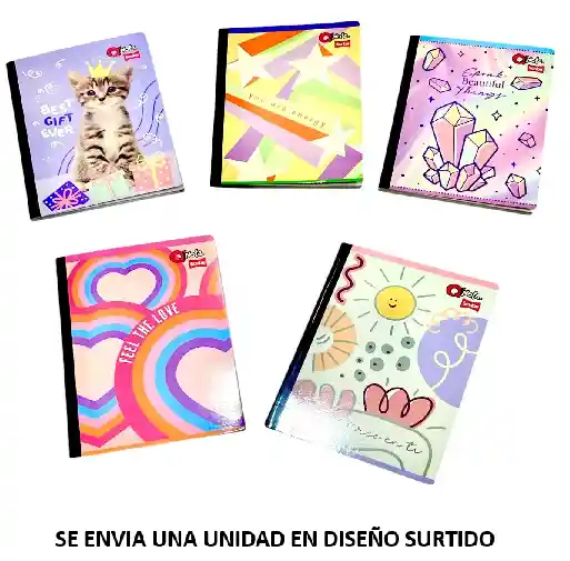 Cuaderno Cosido Rayado 100 Hojas QNota Scribe Diseños Surtidos Para Niña. Se envia diseño segun disponibilidad
