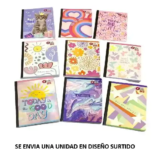 CUADERNO COSIDO RAYADO 100 HOJAS QNOTA DISEÑOS SURTIDOS PARA NIÑA. SE ENVÍA DISEÑO SEGÚN DISPONIBILIDAD