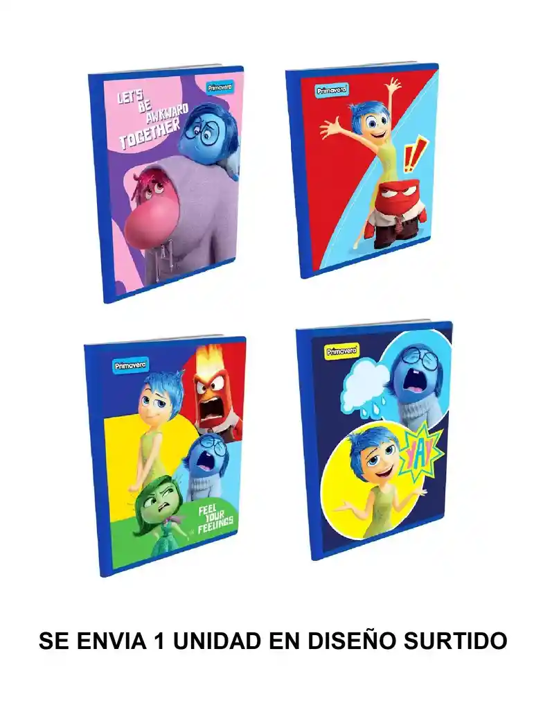 Hermosos Cuadernos De Motivo Intensamente. Con una hoja completa de Stickers. Caratula Uv Brillante, Plastificado Mate con Alto relieve brillante. Incluye una linda Hoja de marcado y notas y Horario al final del cuaderno. 100% Original Disney. 100 Hojas Rayadas. Marca Primavera Descubre todas tus emociones con el Cuaderno Cosido Intensamente 2: Alegría, Furia, Tristeza, Desagrado, Envidia. Los personajes de La Película están aquí para acompañarte en tus aventuras escolares. SE ENVIA 1 UNIDAD EN DISEÑO SURTIDO