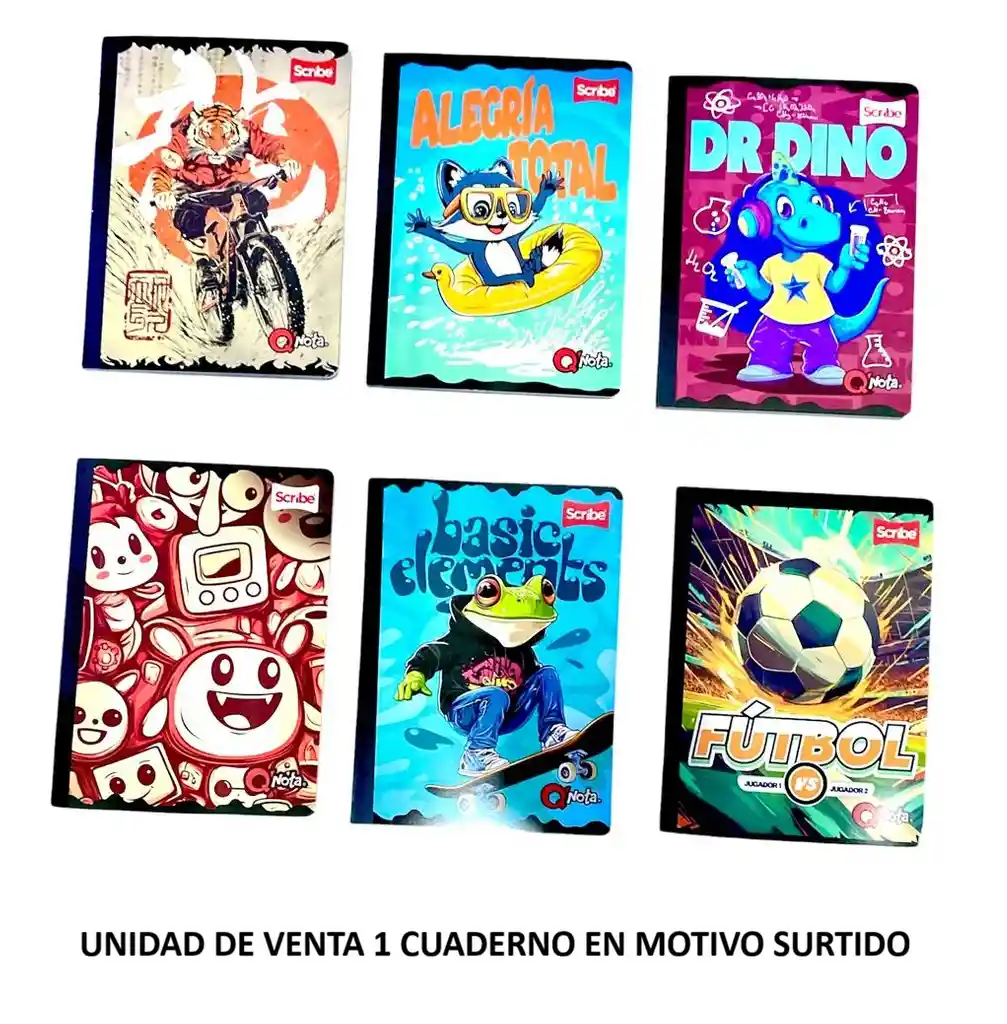 Cuaderno Cosido Rayado 50 Hojas Scribe Qnota Diseños Surtidos Para Niño,. Unidad de venta 1 cuaderno, se envia motivo segun disponibilidad