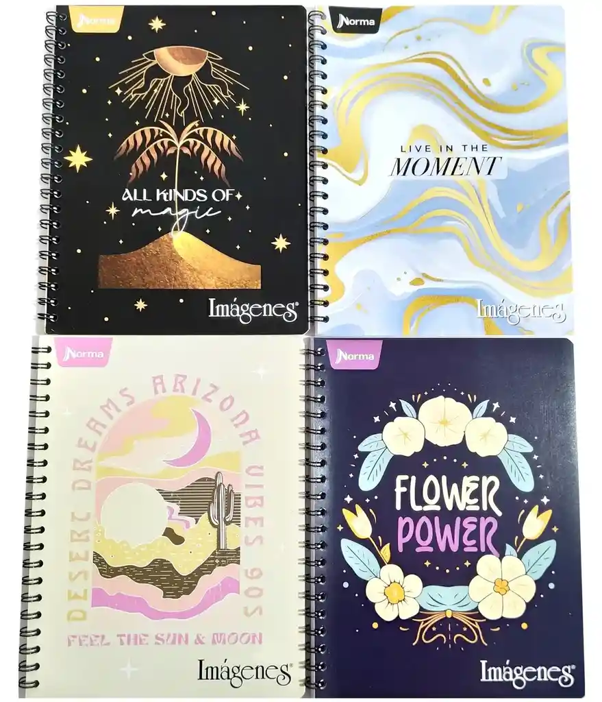Beneficios y Usos Versatilidad: Es ideal para tomar notas rápidas, realizar tareas escolares o como diario personal debido a su tamaño manejable. Funcionalidad: El diseño de argollas permite arrancar hojas con facilidad sin comprometer la estructura del cuaderno y permite que este se mantenga plano sobre cualquier superficie. Personalización: Se encuentra disponible en una amplia variedad de motivos (masculinos, femeninos o neutros) y colores de tendencia.