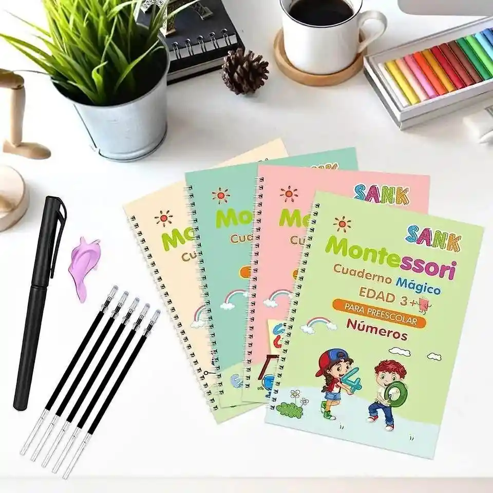 Presentamos el kit de caligrafía definitivo que hará que aprender sea una aventura para tus pequeños. Este set exclusivo incluye cuatro libros interactivos diseñados meticulosamente para fomentar el desarrollo de habilidades esenciales en matemáticas, dibujo, alfabetización y numeración de manera divertida y estimulante. ¿Qué Incluye el Kit? - 1 Libro de Matemáticas: Juegos y actividades para enamorarse de los números. - 1 Libro de Dibujo: Expresa tu creatividad con cada trazo. - 1 Libro del Alfabeto: Aventuras de A a Z para maestros de la caligrafía en potencia. - 1 Libro de Números: Diversión contando, sumando y restando. La tinta se borra en aproximadamente 15 min Medidas de cada cuaderno: 19 cm x 13 cm
