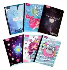 Cuaderno cosido, 100 hojas. Diseño femenino surtido. Hojas rayadas (según disponibilidad). Ideal para estudio, oficina y uso diario.