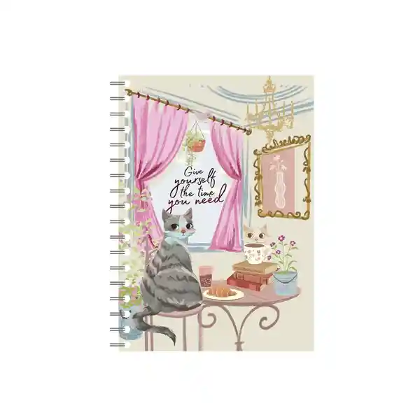 Cuaderno Rayado Argollado Tapa Dura Tinta Negra Gato 80 Hojas