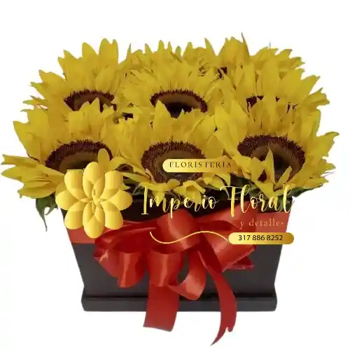 Hermoso cuadrado x 9 girasoles + tarjeta mensaje de color Amarillo ideal para el Agradecimiento
