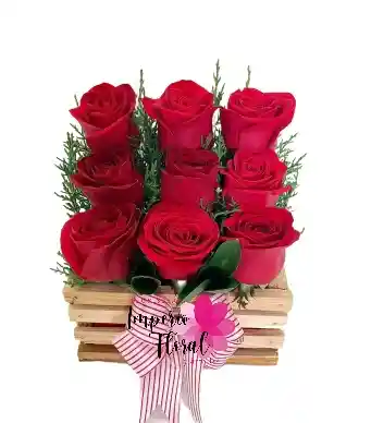 Hermoso cuadrado x 9 rosas + tarjeta mensaje (base disponible negra)