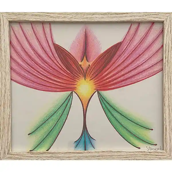 Pieza Única de la Artista Sylvia Barrero 24 x 28 x 3 Enmarcado y Realizado en la Técnica de Lápices de Color Sobre Papel