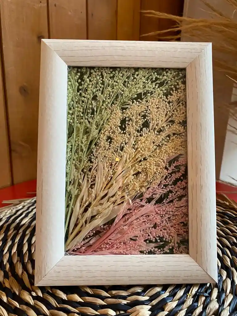 Re-decora tus espacios con color, armonía y elegancia. Este excelente detalle será inolvidable para quién lo recibe...Hermoso Portarretrato decorado con flores preservadas (Naturales que se someten a un proceso para que duren más de 2 años). El producto mide: Alto: 17.5 cms Ancho: 13.5 cms Te puede llegar cualquiera de las dos opciones disponibles, incluye: Caja Bukaflor Portaretrato preservado Tarjeta con el mensaje que desees escribir.