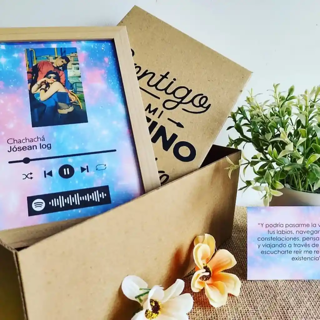 Cuadro para dedicar canciones con codigo spotify, personaliza la foto y canción medida del cuadro 20x15cm Incluye cajita