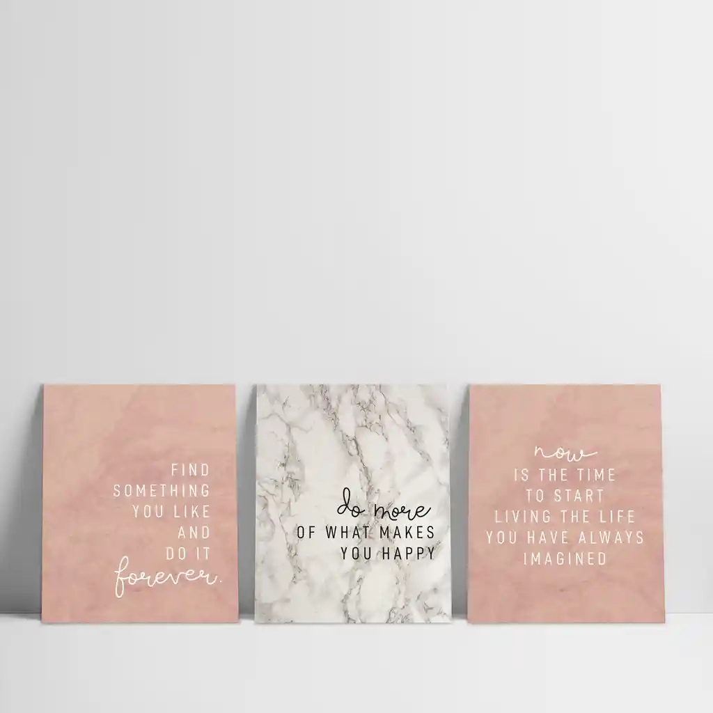 Material: Adhesivo laminado mate sobre mdf de 9mm. Serrucho para colgar.Tamaño:25 cm x 30 cm x 0.9 cm. cada cuadro Color: multicolor.Garantía: 1 mes por defectos de impresión.Cantidad: 3 unidades