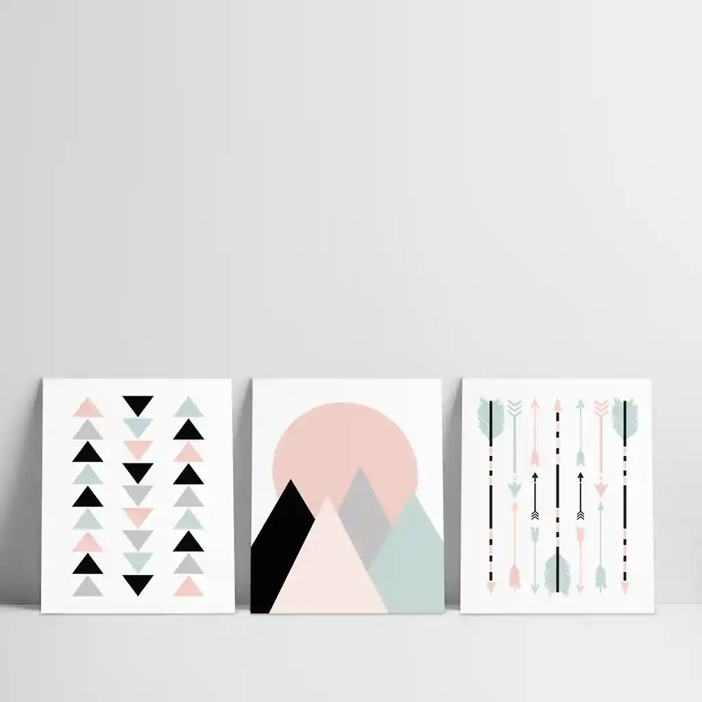 Material: Adhesivo laminado mate sobre mdf de 9mm. serrucho para colgar.Tamaño: 21 cm x 28 cm x 0.9 cm. (cada cuadro del set)Color: multicolor.Se puede limpiar con un trapo húmedo.Cantidad: 3 unidades (Set )