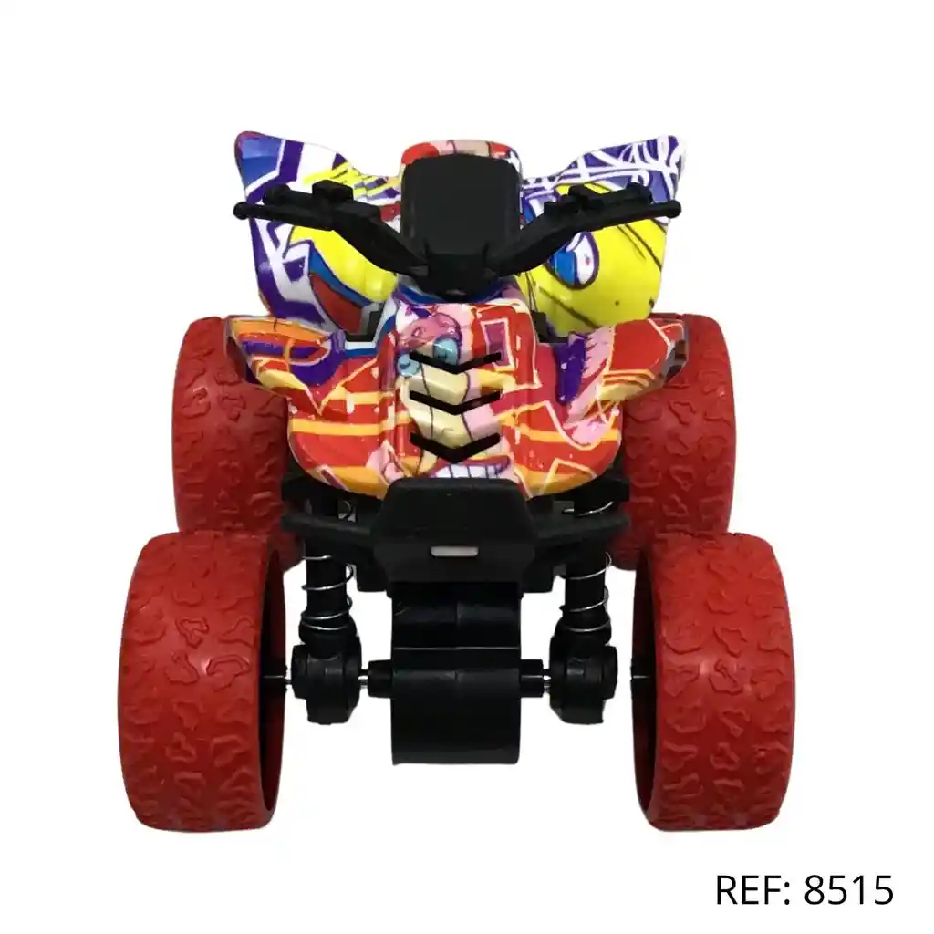 Cuatrimoto a fricción con ruedas rojas y diseño urbano. ¡Corre, gira y desafía todos los terrenos!