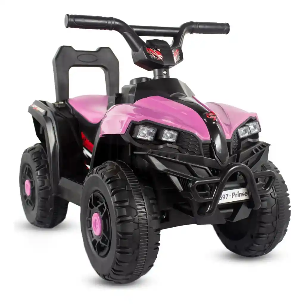 Características destacadas: - Moto eléctrica infantil con Batería 6V y un motor de 380w - Con luz led y música, con indicador de batería - Fácil de manejar, alcanza una velocidad de 3-5km/h Resumen del producto: La Cuatrimoto Eléctrica PRINSEL es ideal para niños aficionados a las motocicletas, con batería de 6 voltios y un motor de 380w que permite alcanzar una velocidad de hasta 5 km/h. Sus luces y sonidos divertirán a tu pequeño en sus recorridos. Ideal para paseos al aire libre y estimular habilidades motoras finas y gruesas. Medidas (Ancho x Alto X Fondo) Cms 37 x 49 x 73 cm