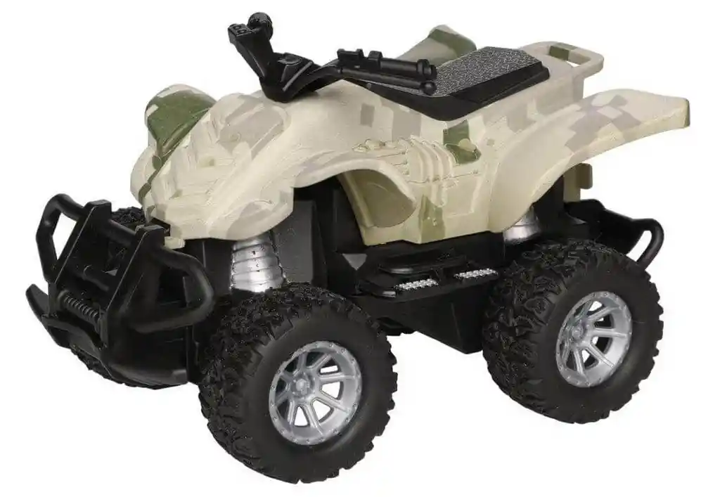Esta cuatrimoto a control remoto es el juguete ideal para los niños amantes de la aventura. Con su diseño en tonos camuflados de estilo militar, ofrece una experiencia emocionante y realista al conducir por todo tipo de superficies. Fácil de manejar gracias a su control remoto, es perfecta para explorar y divertirse al aire libre, fomentando la creatividad y el juego activo en los más pequeños. /// El juguete incluye baterias /// Ficha Técnica: Dimensiones del vehiculo: 13 cm x 10 cm x 8 cm Material: Plástico ABS no toxico Edad recomendada + 6 Años Fuente de energía del carro: Baterías AA ( Incluidas) Dimensiones del control: 25 cm x 10 cm Fuente de energía: Baterías AA ( Incluidas) Referencia: C3993 Certificado de conformidad: SL-CS-210044 ** _Para defectos de fábrica o retractos: \_Por favor revise el producto apenas lo reciba y antes de usarlo. No aplican ley de retracto o defectos de fábrica luego de usar el producto. Se manejan máximo 5 días para reportar defectos de fábrica (por ejemplo, producto funciona mal, piezas faltantes, rotas, etc). Para hacer efectiva la devolución el producto debe devolverse con el empaque original, el cual debe estar en buen estado, incluir todos los documentos y las partes completas y sin daños.