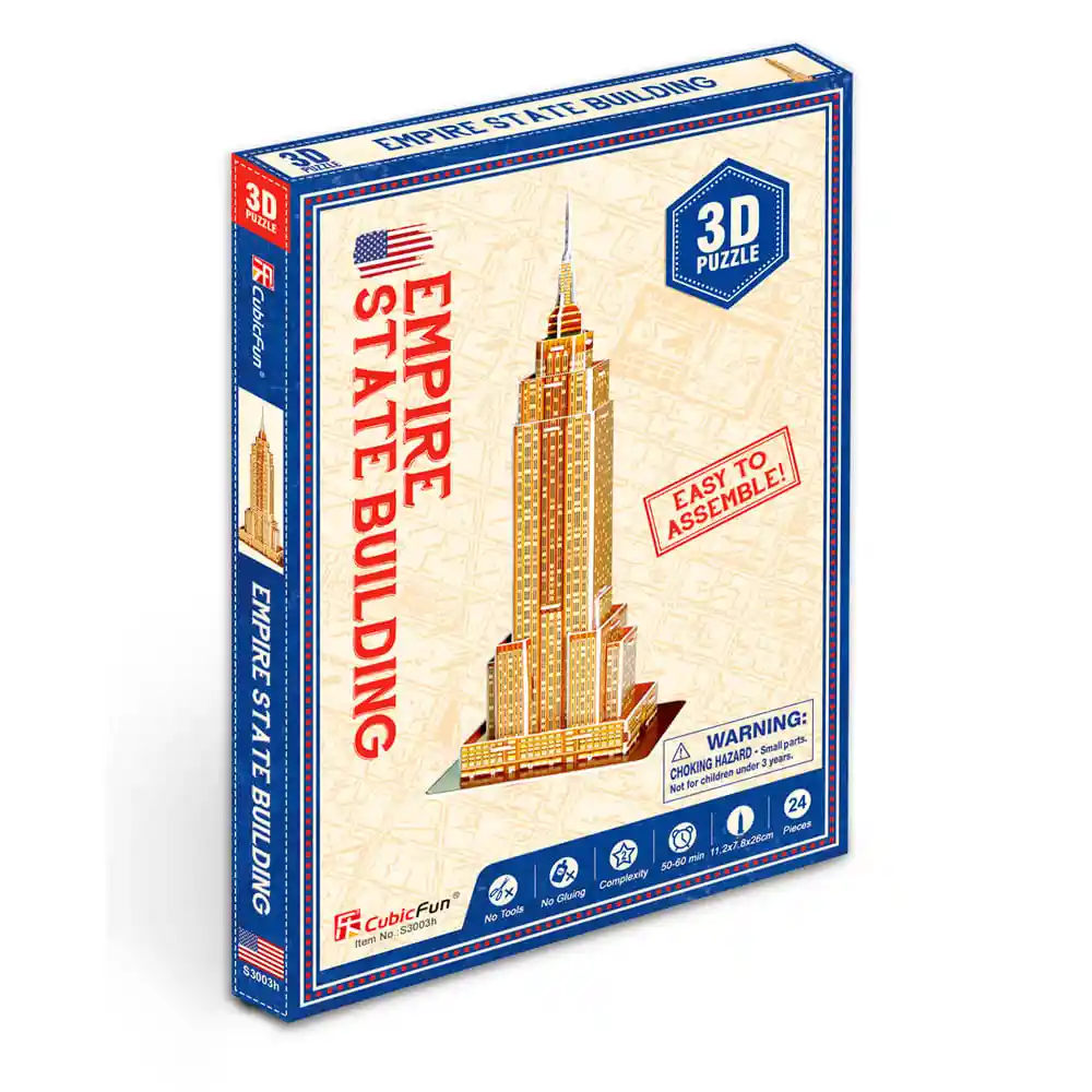Diviértete armando el Puzzle 3D del Empire State. Un icono en los edificios más conocidos de New York en versión mini ideal para decorar y exhibir. Este icono neoyorkino ha sido protagonista en canciones y películas.