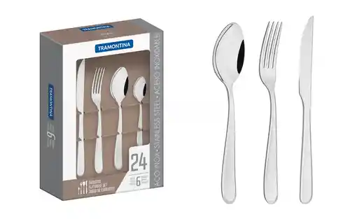 Cubiertos Angra Composicion 6 Cucharas Mesa + 6 Cucharas Te + 6 Tenedores + 6 Cuchillos Mesa. 24 U