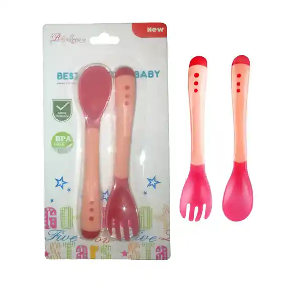Cubiertos para bebé silicona medidor de temperatura calor ● Cuchara y tenedor para niños pequeños 100% libres de BPA