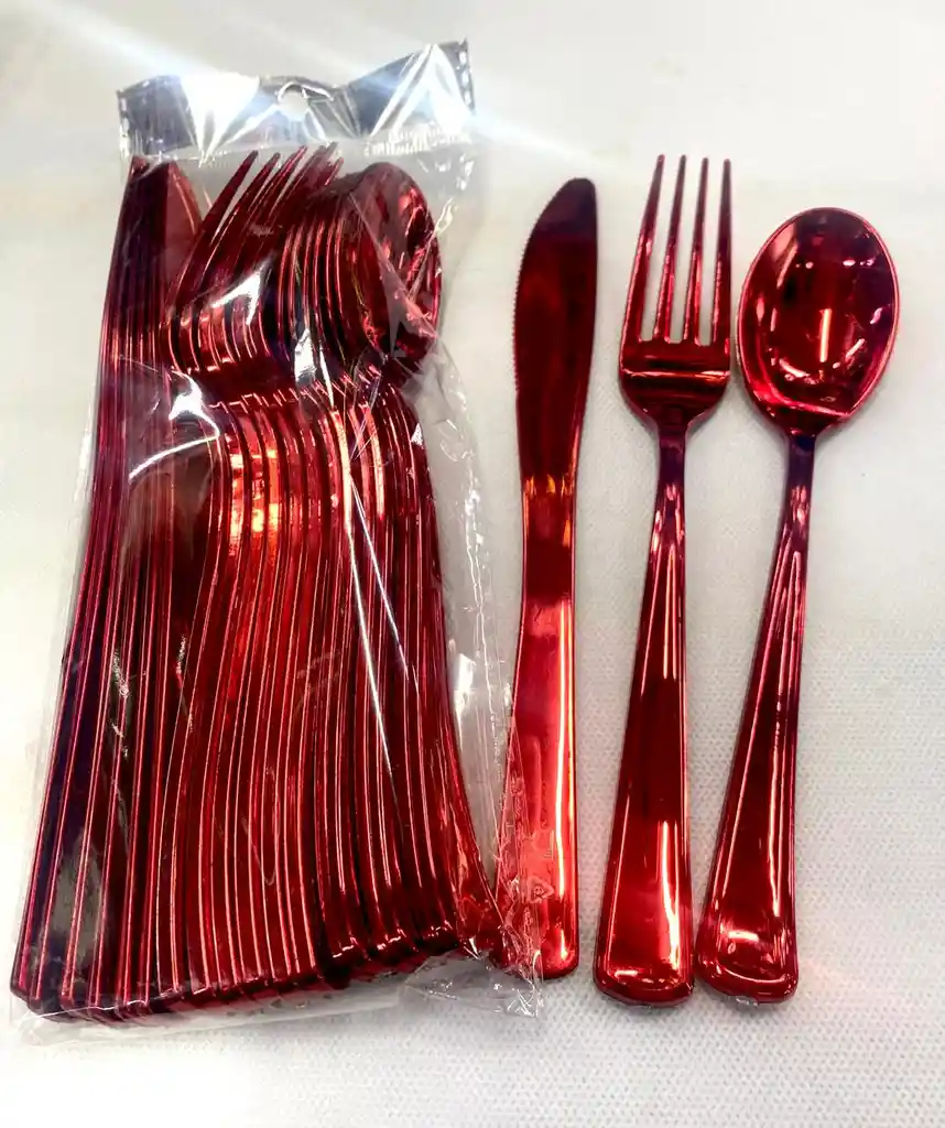ELEGANTES CUBIERTOS ROJOS METALIZADOS COLOR SÓLIDO VIBRANTE AÑADIRAN UN TOQUE DE ALEGRIA A TUS CELEBRACIONES CALIDAD PREMIUM, MUY RESISTENTES. CONTIENE 6 TENEDORES 6 CUCHILLOS 6 CUCHARAS NO INCLUYE SERVILLETAS NI CINTAS